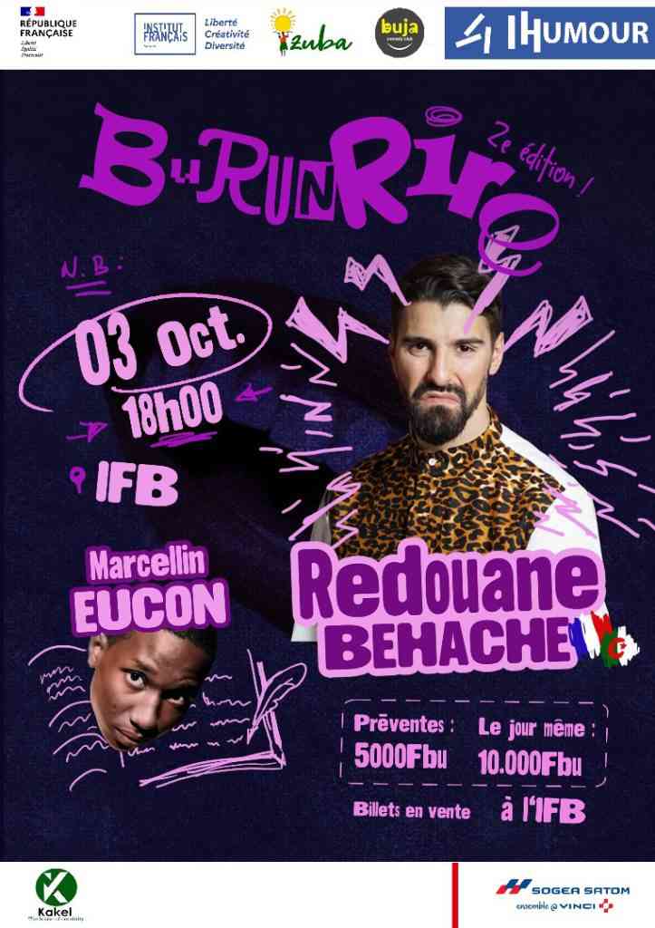 Découvrez la deuxième soirée du festival ! Le vendredi 03 octobre – 18h00 IFB Au programme : Behache Rédouane(France/Algérie) Marcellin Eucon (Burundi) Prévente : 5.000 Fbu | Sur place : 10.000 Fbu Billets disponibles dès maintenant à l’IFB Une soirée 100% rires avec deux One Man shows ! En partenariat avec le Centre culturel Izuba, […]
