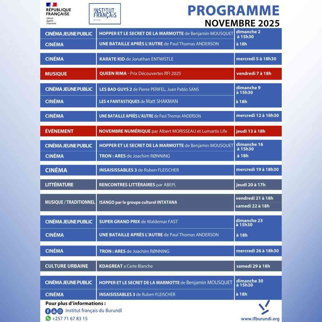 🔸 Cinéma, musique, littérature, culture urbaine, numérique… Ce mois de novembre, l’IFB vous propose un programme riche et varié pour tous les goûts ! 🎬🎶📚💡