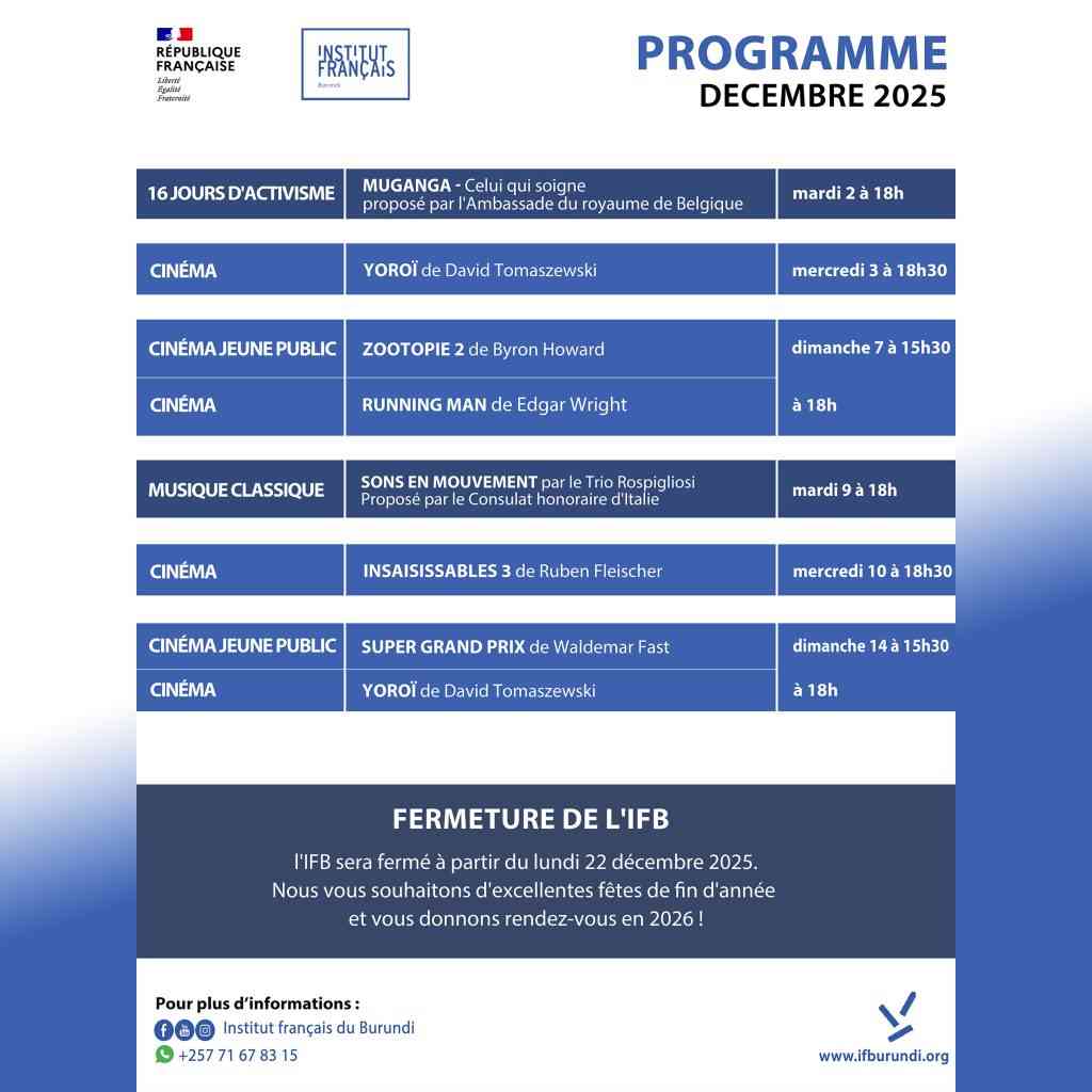 L’Ambassade du Royaume de Belgique au Burundi vous invite à venir voir le film Muganga, une œuvre forte et profondément humaine sur le Docteur Mukwege.